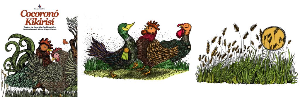 Ilustraciones para el libro COCORONÓ KIKIRISÍ Edición publicada por Editorial Sol y Luna.